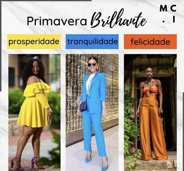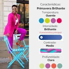 A paleta Primavera Brilhante é uma das mais luminosas de toda a colorimetria. Quando uma pessoa dessa paleta usa as cores certas, o rosto acende. Quando usa errado, perde vida.